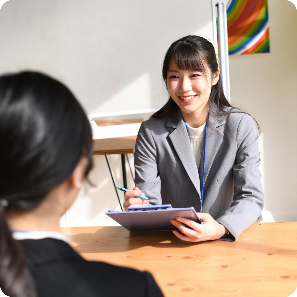 就活サポーターが、作成から徹底サポート。100人以上のESを添削してきた経験をもとに、人事目線で「通過できるES」を作成しましょう。さらに、面接対策では「あなたの強みが伝わる話し方」を徹底的に練習し、どんな面接でも通過できる状態を目指せます!